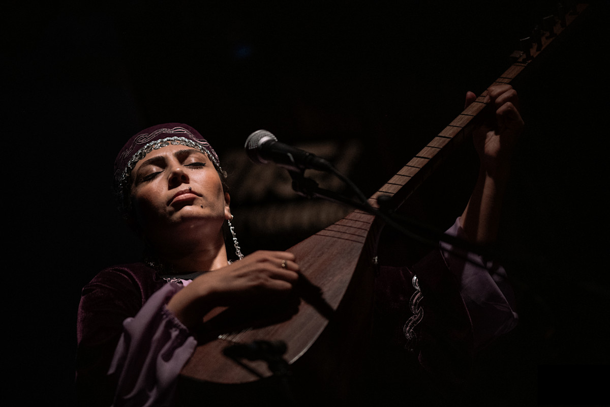 Fluent in Azerbaijani, Turkish and Georgian, Ashiq Nargile represents the cosmopolitan heritage of old Tbilisi. She is currently the only female ashiq (bard) living and performing in Georgia. Her vocal recital of epic folk poetry is both ecstatic and deeply expressive, and is interspersed with bursts of the virtuosic, highly ornamented saz (long-neck lute).