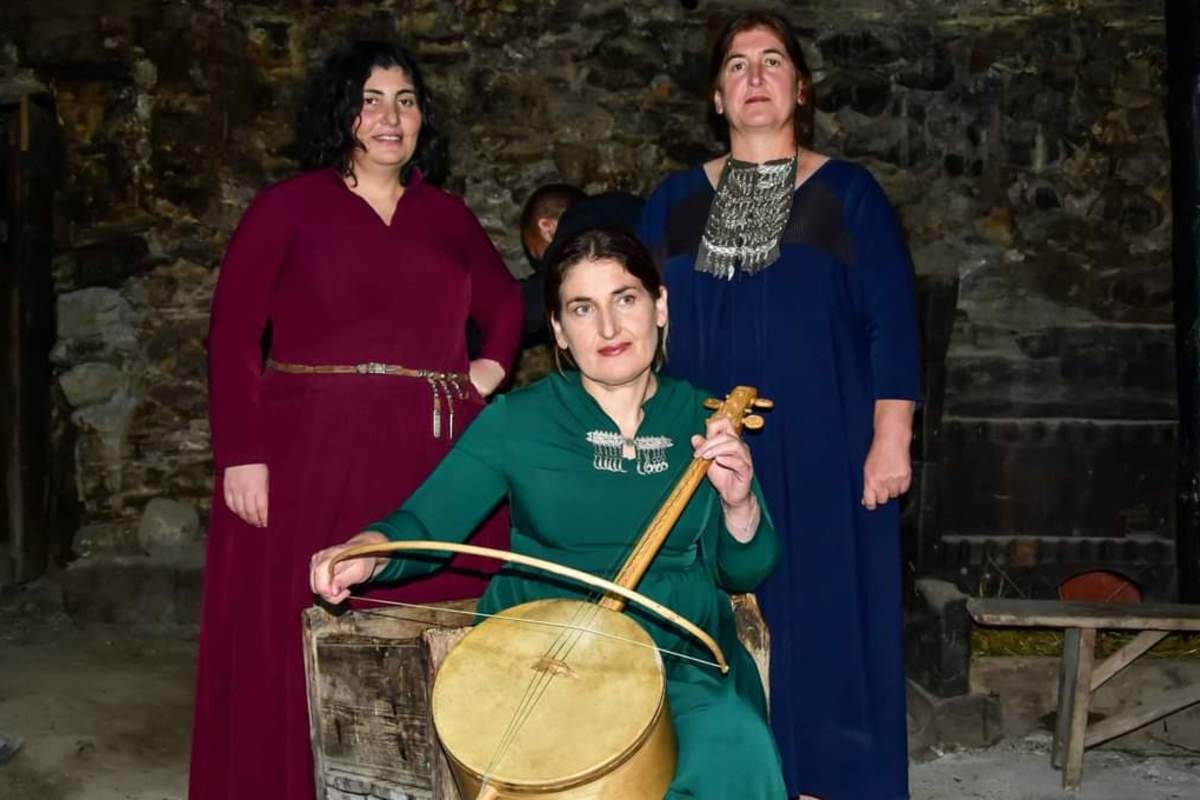 The Chamgeliani Sisters are a trio coming from a long lineage of singers from the mountainous and isolated province of Svaneti. Singing their ancestor’s songs, which are believed to be thousands of years old, and accompanied by the chuniri (three-stringed spike fiddle), the sisters bring, together with the Didgori Ensemble, a unique take on myths and Georgian folklore of this part of Georgia.